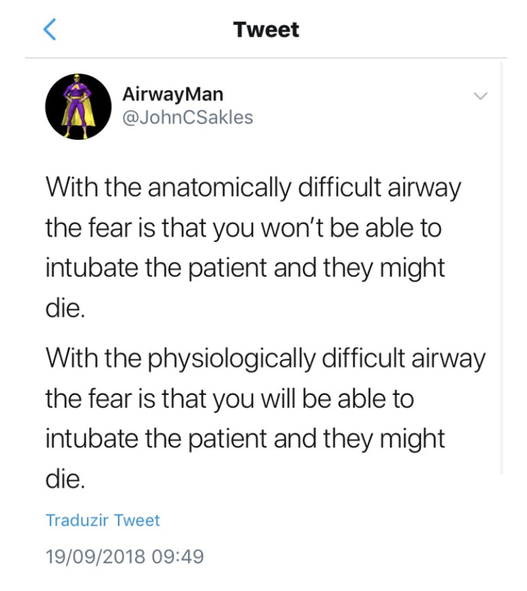 Então a via aérea anatomicamente difícil, é quando o paciente está em risco caso você não consiga intubá-lo por problemas anatômicos.